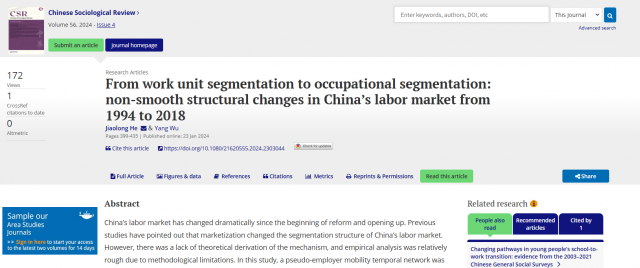 青年教师研究成果发表在《Chinese Socio..