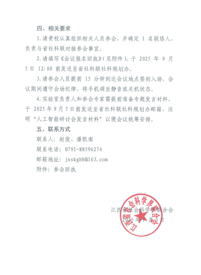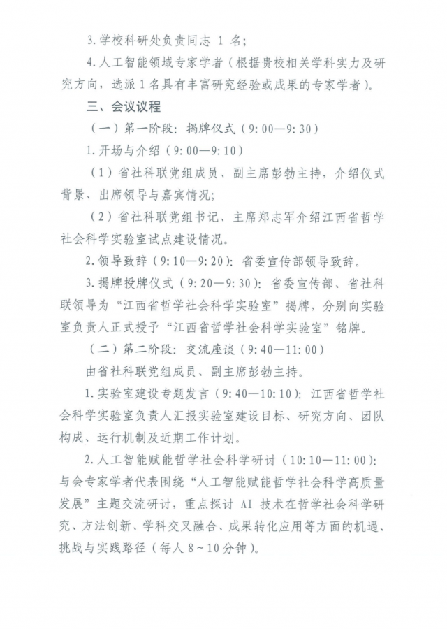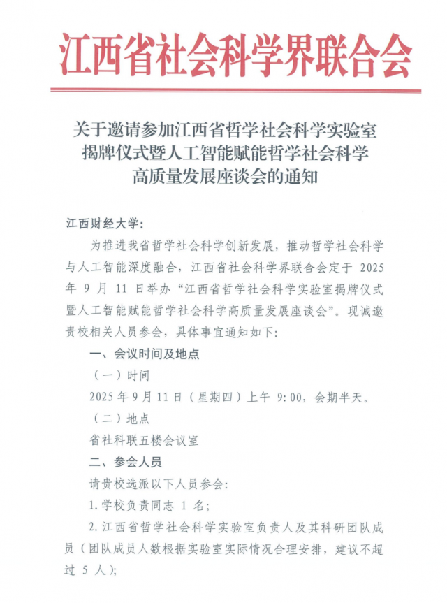 关于邀请参加江西省哲学社会科学实验室揭牌仪式暨人工智能赋能哲学社会科学高质量发展座谈会的通知